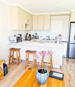 Situated on a farm in beautiful Stellenbosch, Kunjani has a gorgeous selection of self catering villas.Β We were blessed enough to spend a night in the Cabernet Villa, but to be honest, a single night is just not enough to soak up the space.Β A long weekend or longer would be absolutely blissful, as you just have everything you need right at your fingertips – a kitchen kitted out with all modern appliances, a smart television, a private patio with braai facilities and gorgeous outdoor furniture, heating and air-conditioning, an enormous and super comfy bed, plus access to the restaurant and wine tasting right there.